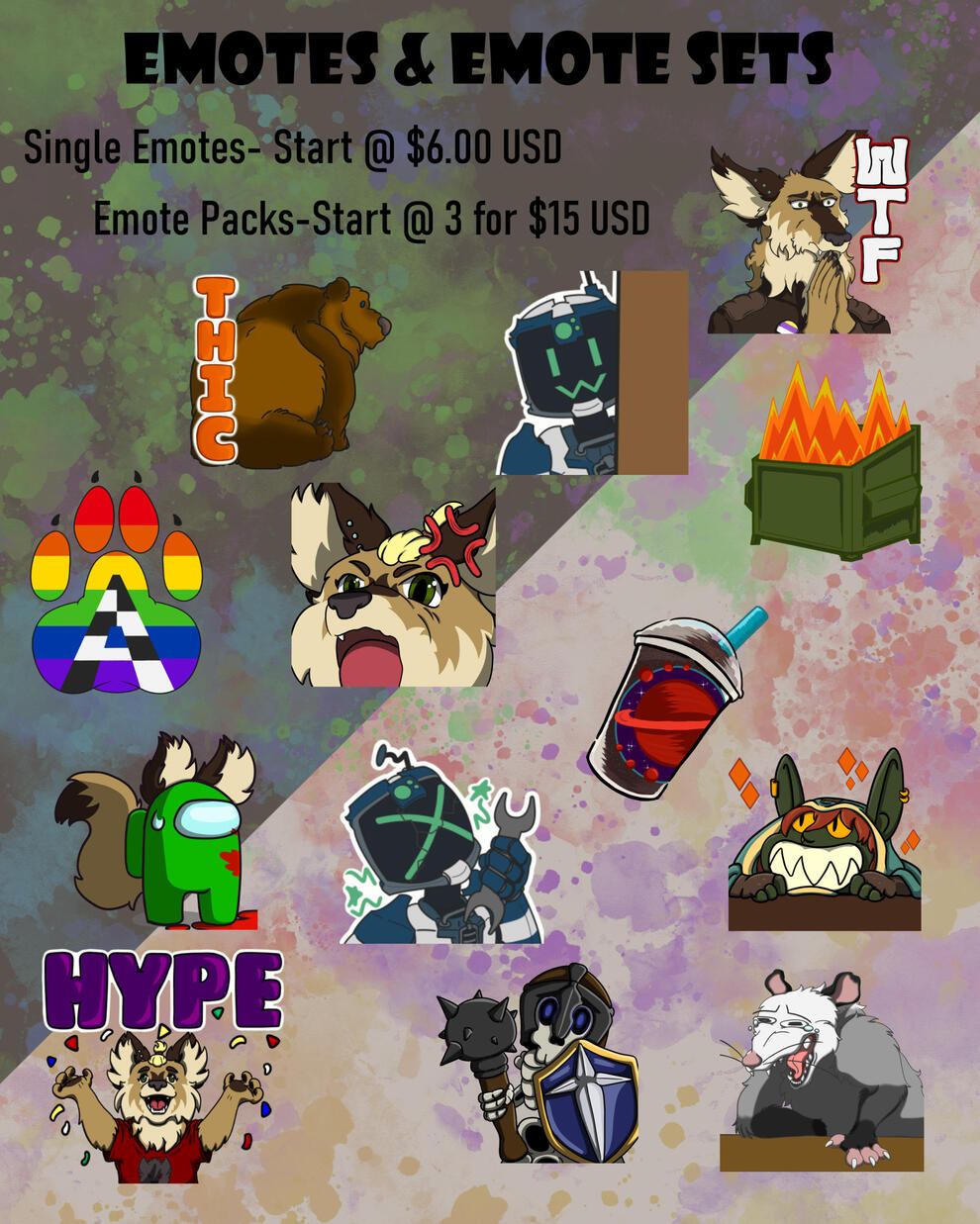 I am also able to make a variety of assets for people who stream, have a discord community or use chat apps like Telegram. Prices vary depending on what is requested or the kind of asset you need, and how many.